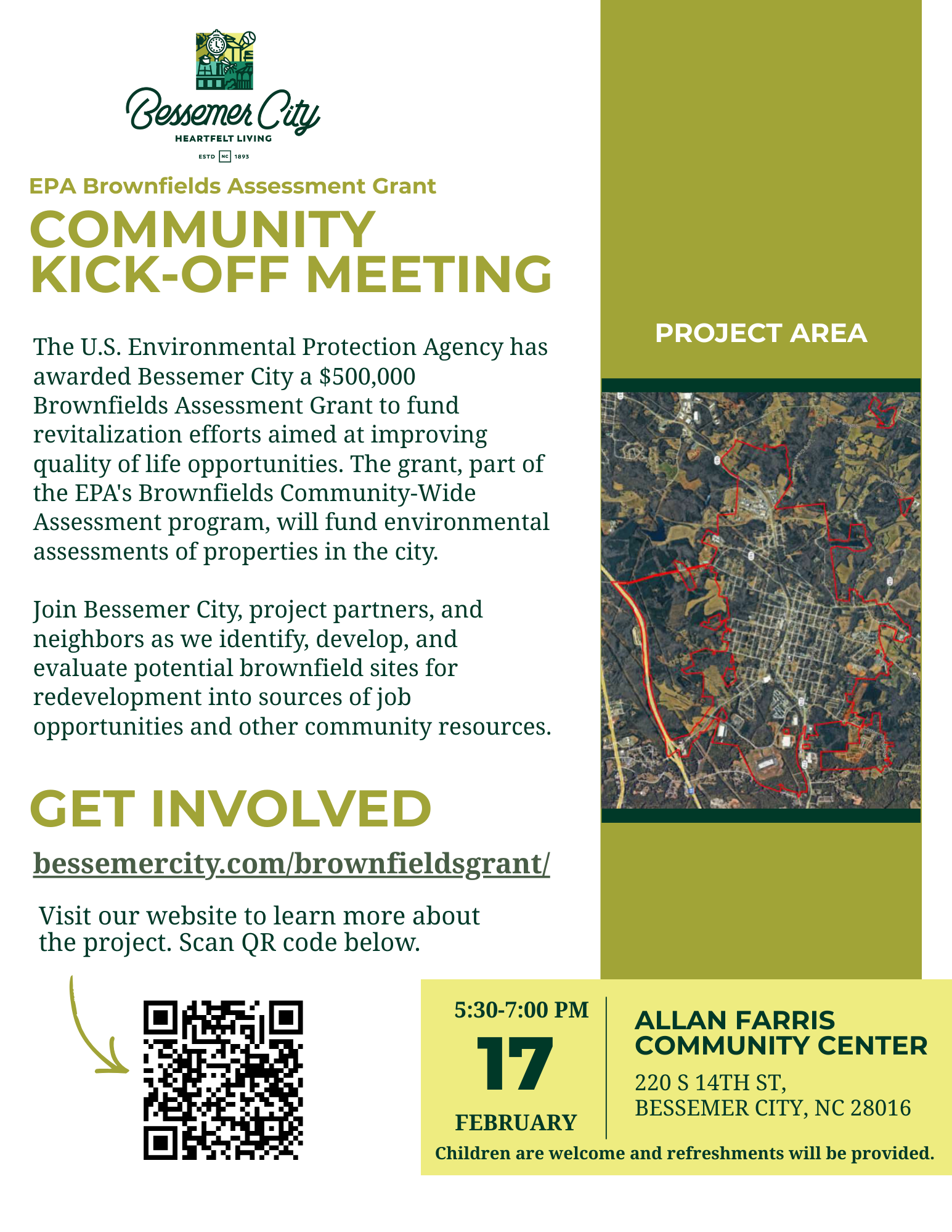 This public meeting is an important part of the EPA Brownfields grant requirements, ensuring community members have a chance to participate in shaping local environmental and redevelopment priorities.