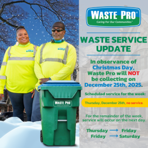City Hall and administrative facilities will be closed Wednesday, December, 24th; Thursday, December 25th; and Friday, December 26th for Christmas and will resume regular business hours on Monday, December 29th, 2025.