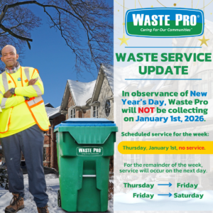 City Hall and administrative facilities will be also closed Thursday, January 1st and will resume regular business hours on Friday, January 2nd, 2026.