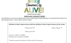 100 Block of West Virginia Avenue AND the 100 Block of East Virginia Avenue will be closed on Friday, April 17th.