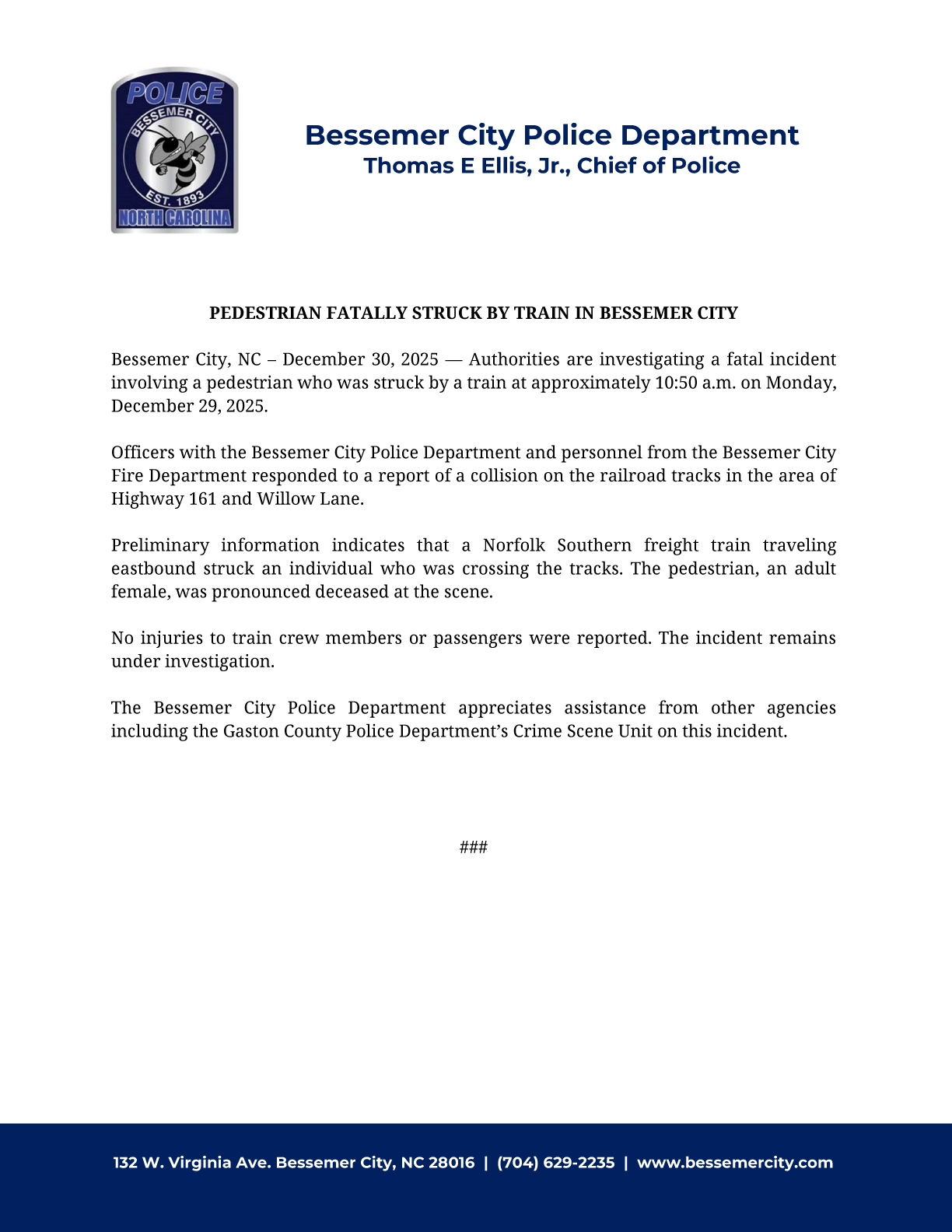 December 30, 2025| Announcements, City News, Press Releases, Public Notices| Bessemer City